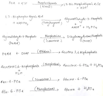 - ( Carboxylations of RuBp , reduction of CO2 & regeneration of RuBP.)